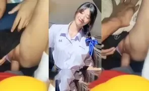 เย็ดคาชุดนักเรียน เด็กมัธยมแหวกหี ให้แฟนเย็ดสด